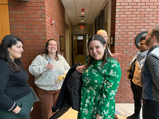 Congratulations to Dr. Tariq Brown who successfully defended his PhD thesis entitled "Alcohol-Induced Plasticity within Dopaminergic Memory Circuits in Drosophila" on Friday March 14, 2025. Tariq presented his work to a full house including his parents, and then the department celebrated with Pi after his successful closed-door defense. That evening the Kaun Lab went Axe Throwing at Far Shot in Providence and Tariq got to show off his impressive skillz.