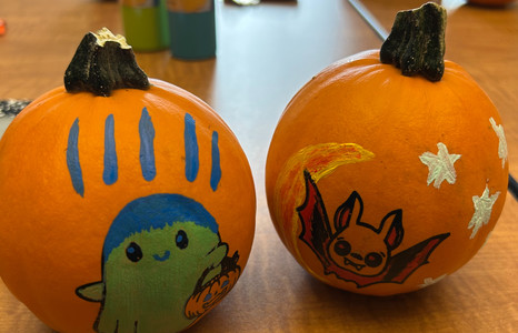 Lab Meeting October 31, 2025 was in homage to Halloween as we all decorated pumkpins while updating everyone on our projects. Exchange student Matthew Kim (a graduate student visiting from Marla Sokolowski's lab at the University of Toronto) treated us all to Buffalo chicken dip, and we welcomed Pathobiology graduate student Nola Ihejirika as she completed her first week of her rotation in the lab.